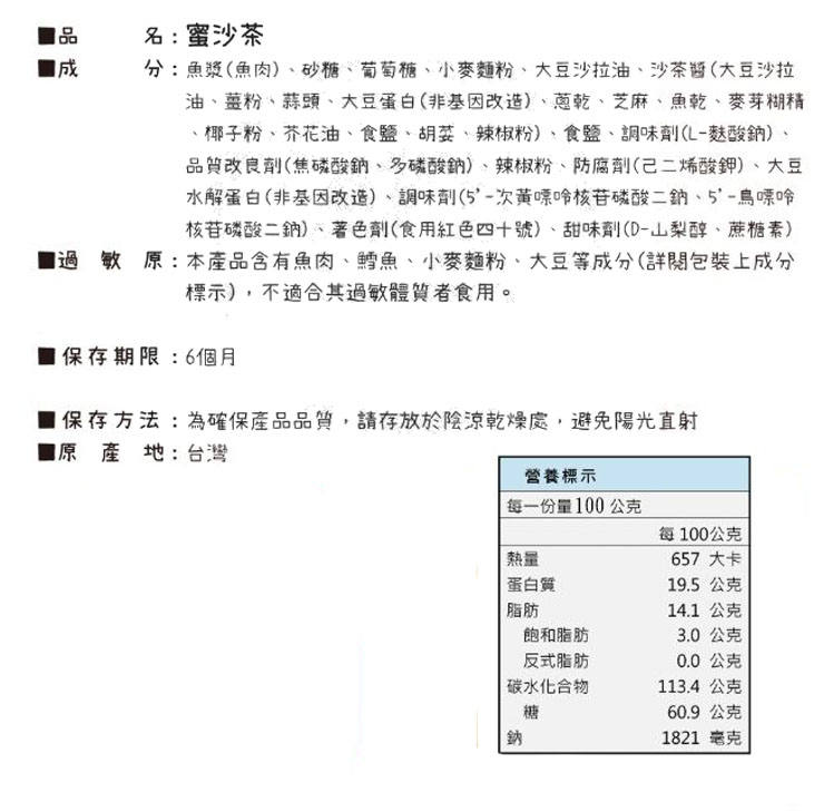 大田 密沙茶風味魚片 300克 整袋3公斤